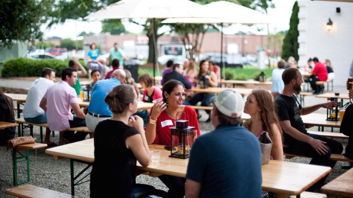 Our verdict: This is our reliable go-to when we want to support a great local Charlotte business. The Ballantyne location has plenty of space for easy mingling—you're not crammed into a corner shouting over noise. The staff handles groups professionally, and the food is genuinely good for sharing (those German pretzels and schnitzel are crowd favorites). OMB's beer speaks for itself in Charlotte.